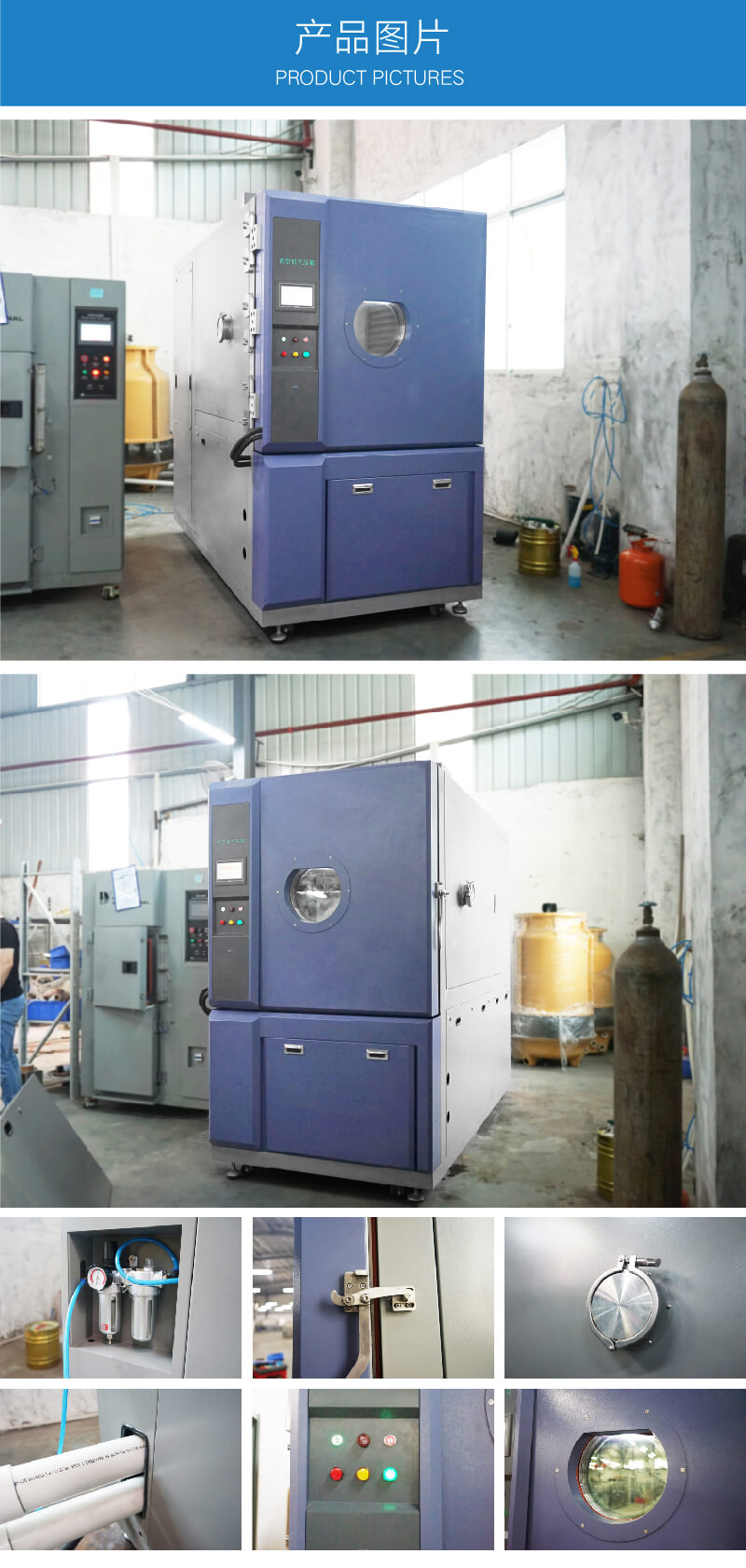 高低溫低氣壓試驗箱可用于散熱試驗樣品和非散熱試驗樣品的試驗。對于散熱試驗樣品的試驗,其散熱功率不能超過試驗箱制冷量,因制冷量為動態值,其隨溫度點變化而有所變化。